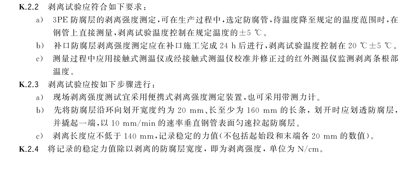 最關鍵的還是剝離強度測試,按國標要求,是剝離強度≥50N/每公分并80%表面呈內聚破壞狀。剝離時的管體溫度是15-25℃,環境溫度這一點很重要,之前有項目就是施工單位大夏天頂著太陽底下做剝離,鋼管表面溫度曬到了50多℃,常溫的熱縮帶,膠層都曬軟了。